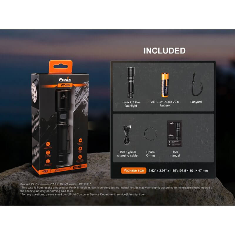 Der echte Nachfolger der Fenix C7 Taschenlampe ist die C7 V2.0 Die C7 Pro hat flutigeres Licht aus 4 LEDs.